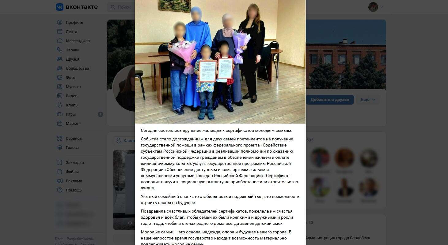 Глава администрации города Сердобска Пензенской области Марина Ермакова на своей странице в социальной сети «Вконтакте» сообщила о вручении жилищных сертификатов новым гражданам России.