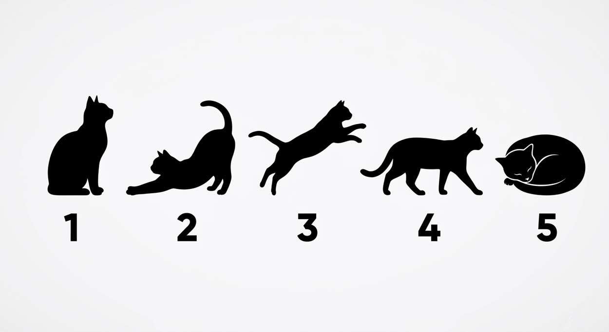 Предлагаем вам выбрать один из пяти силуэтов кошек на картинке и узнать, какой тип личности доминирует в вашем характере.
